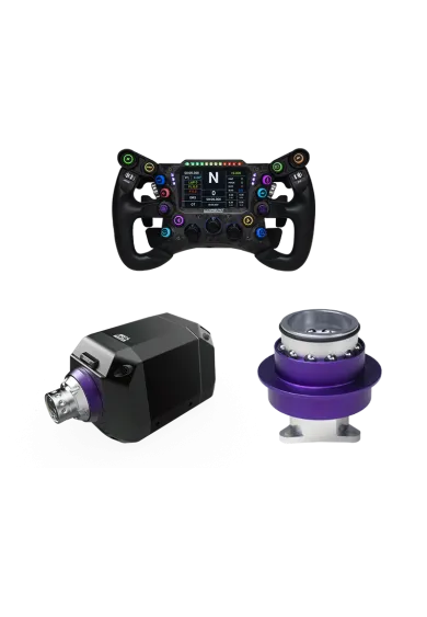 The Conspit Ares Platinum Set includes the ARES 20 Direct Drive base (20 Nm, 23-bit encoder), the 290 GP carbon wheel with 4.3″ LCD display, and the CDR Quick Release. A professional-grade bundle designed for ultimate torque, precision, and full immersion in sim racing.