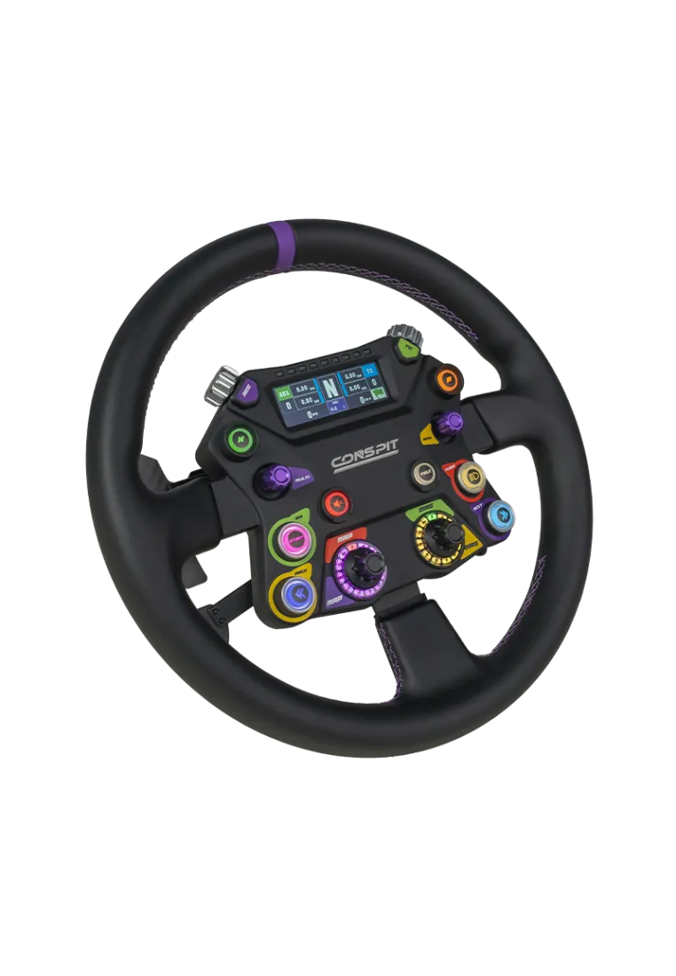 The 310 APEX is an open wheel hub, equipped with CONSPIT’s custom 2.99″ LCD display and compatible with multiple rims. Built entirely from metal – solid, yet packed with modern functions that take sim racing to the next level.