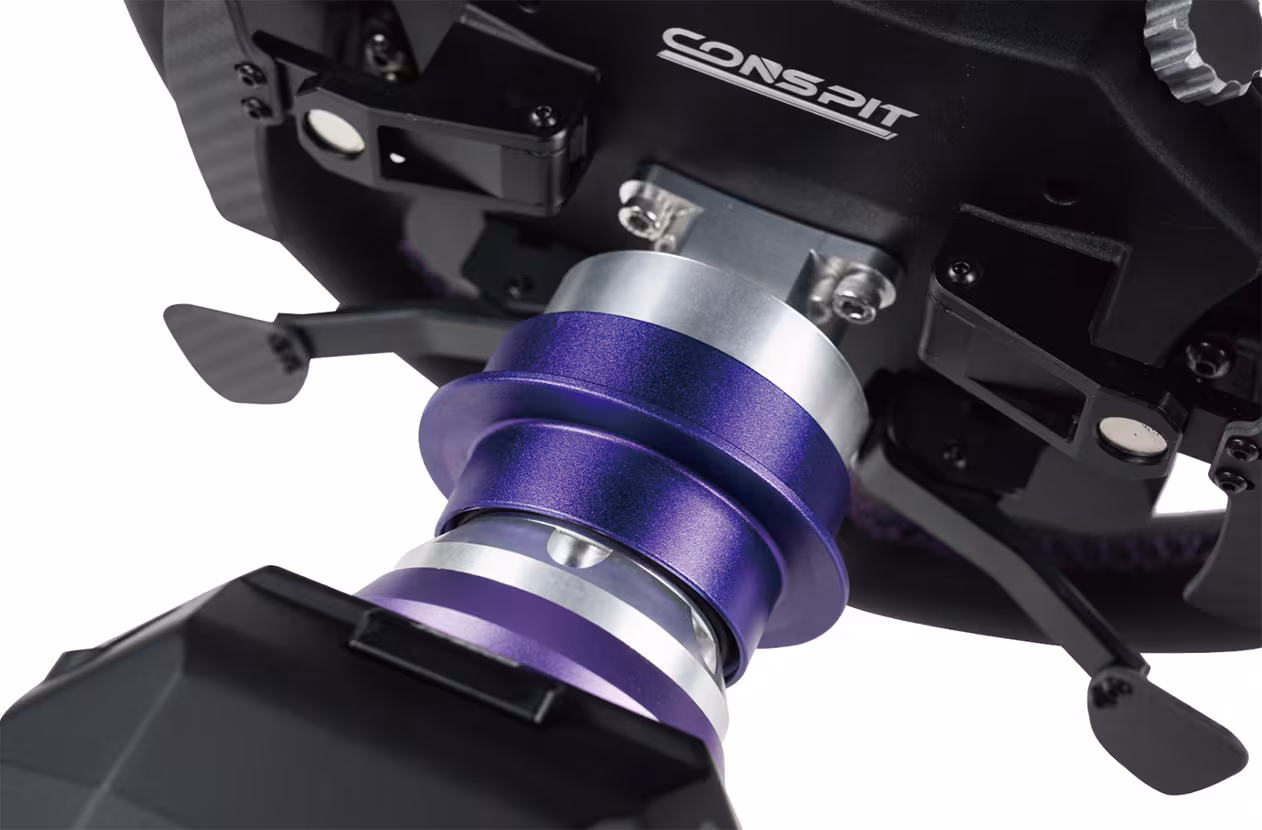 The Conspit CDR QR wheelbase side lets you use the Conspit CDR QR on older Conspit bases with CDP quick release. This system offers plug-and-play functionality, requires no modifications, and ensures full signal stability. Compatible with wheels like PW1, MAX-01, 290 GP, 300 GT, HAO Hub, and Apex 310.