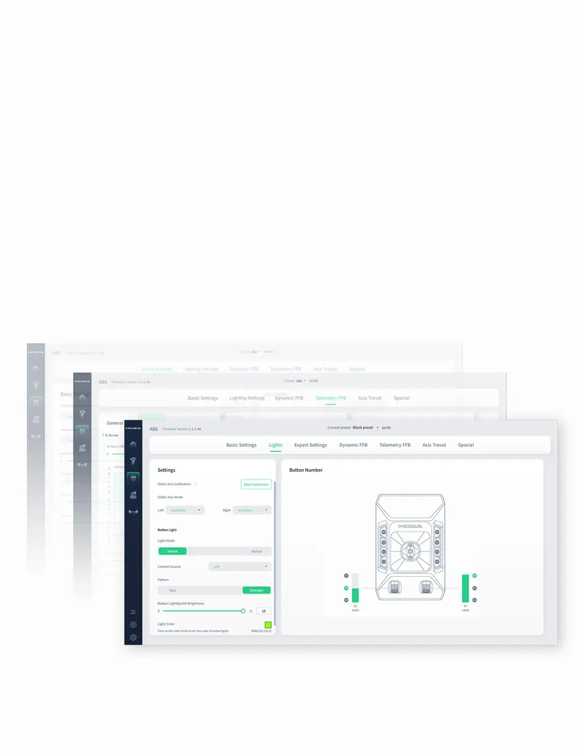 MOZA Cockpit software offers extensive customization options. This includes user-defined lighting telemetry (brightness and logic), native LED behavior settings, and a wide range of force feedback presets tailored to various flight scenarios.Zapytaj czatbota ChatGPT