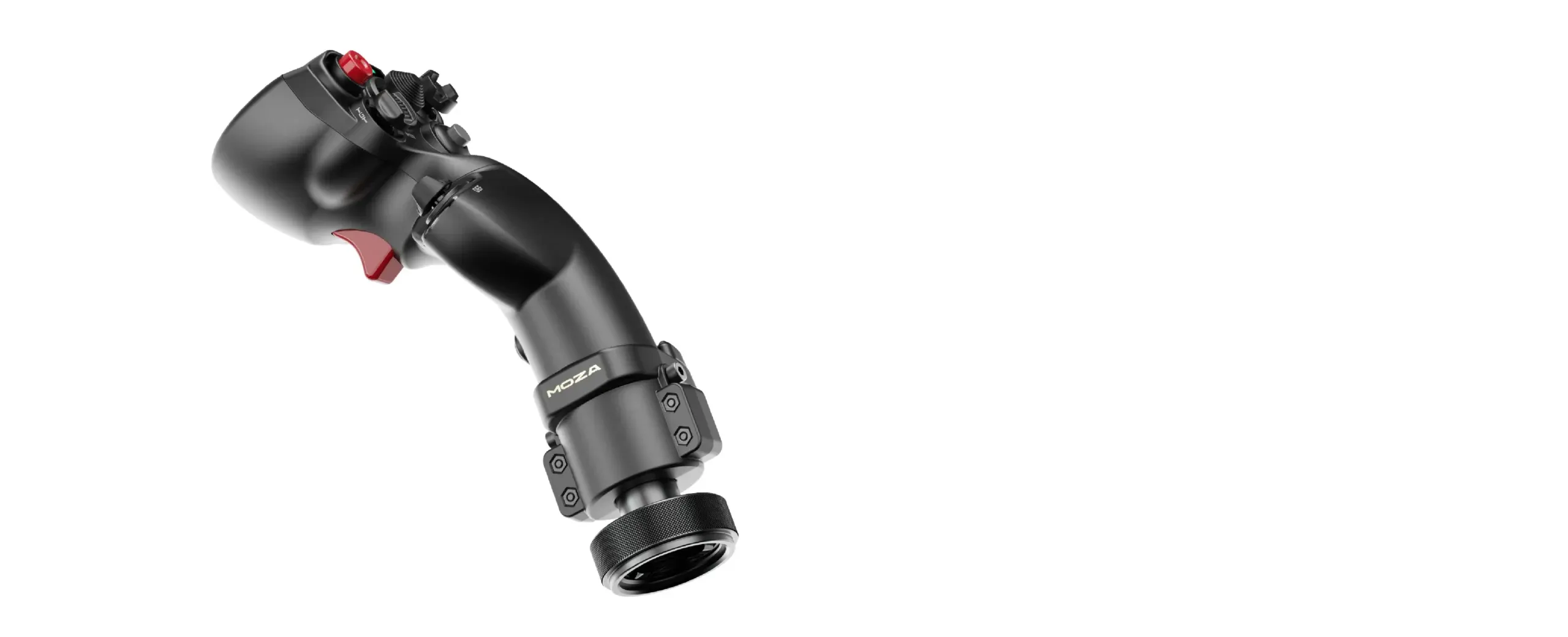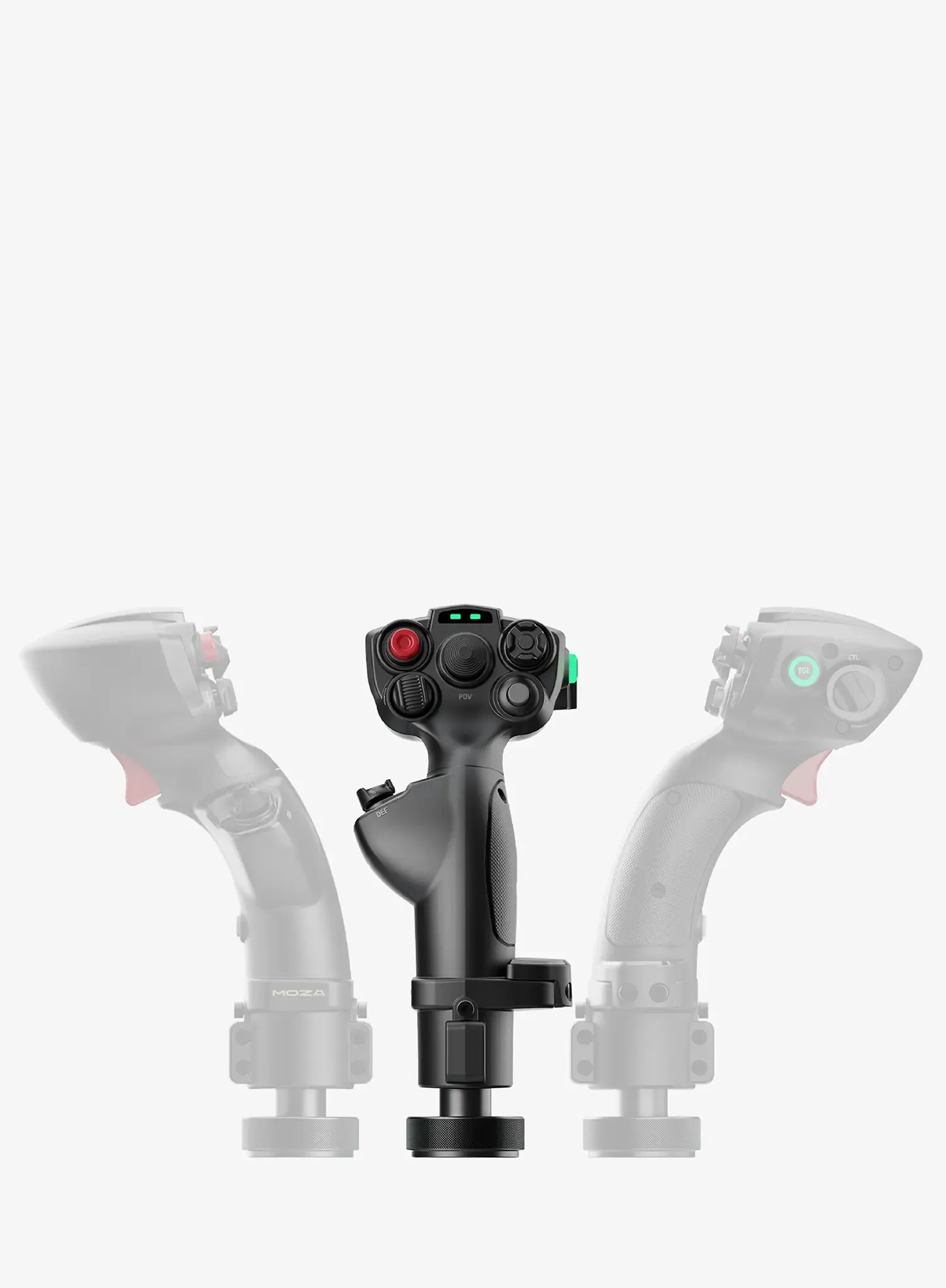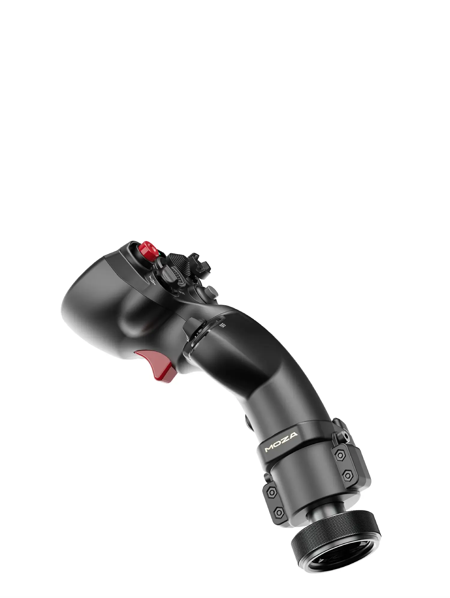 The MOZA MHG flightstick features a universal mechanical connector, fully compatible with MOZA flight bases and supports angled installation.