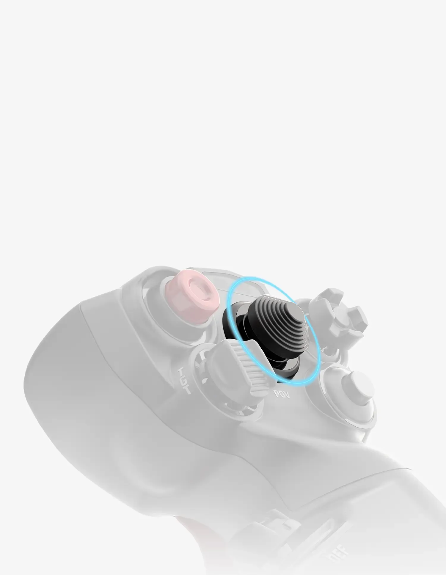 Utilizing a contactless Hall sensor, the hat switch ensures smooth, drift-free performance that surpasses traditional potentiometer-based switches in both precision and durability. Users can configure it as an axis or button input directly in MOZA Cockpit.