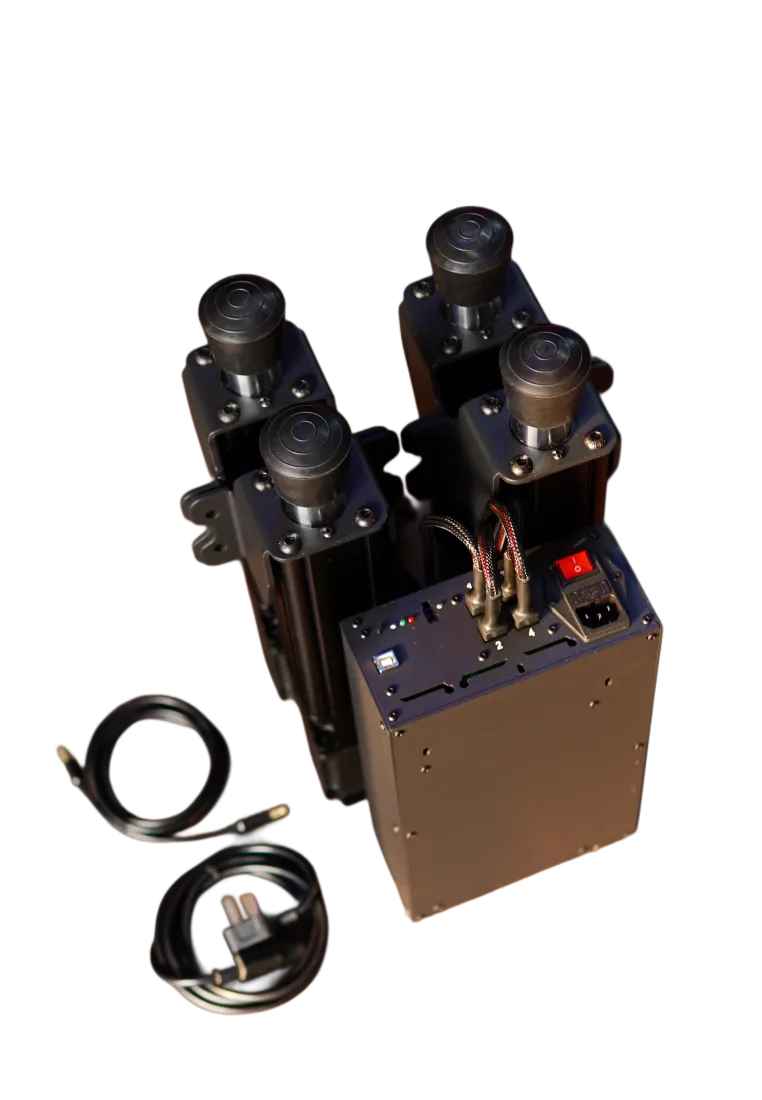 The actuators feature speeds up to 260mm/s and a lifting capacity of up to 300kg per set. This ensures an instantaneous response to in-sim events, eliminating lag and allowing for intuitive, real-time corrections of your racing line or flight path.