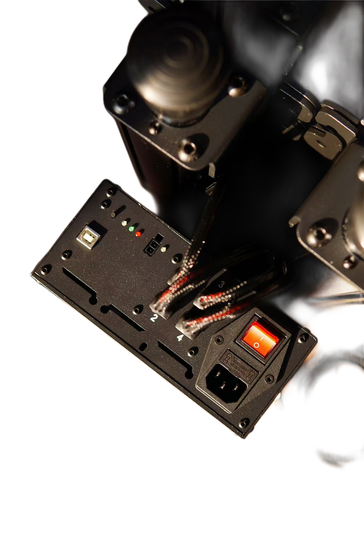 At the heart of the system is a high-performance controller in a metal housing, compatible with dedicated racing and flight software. The intuitive interface allows for quick calibration and fine-tuning of effect intensity to suit any driver's preference. Fully compatible with Simhub and Simtool!