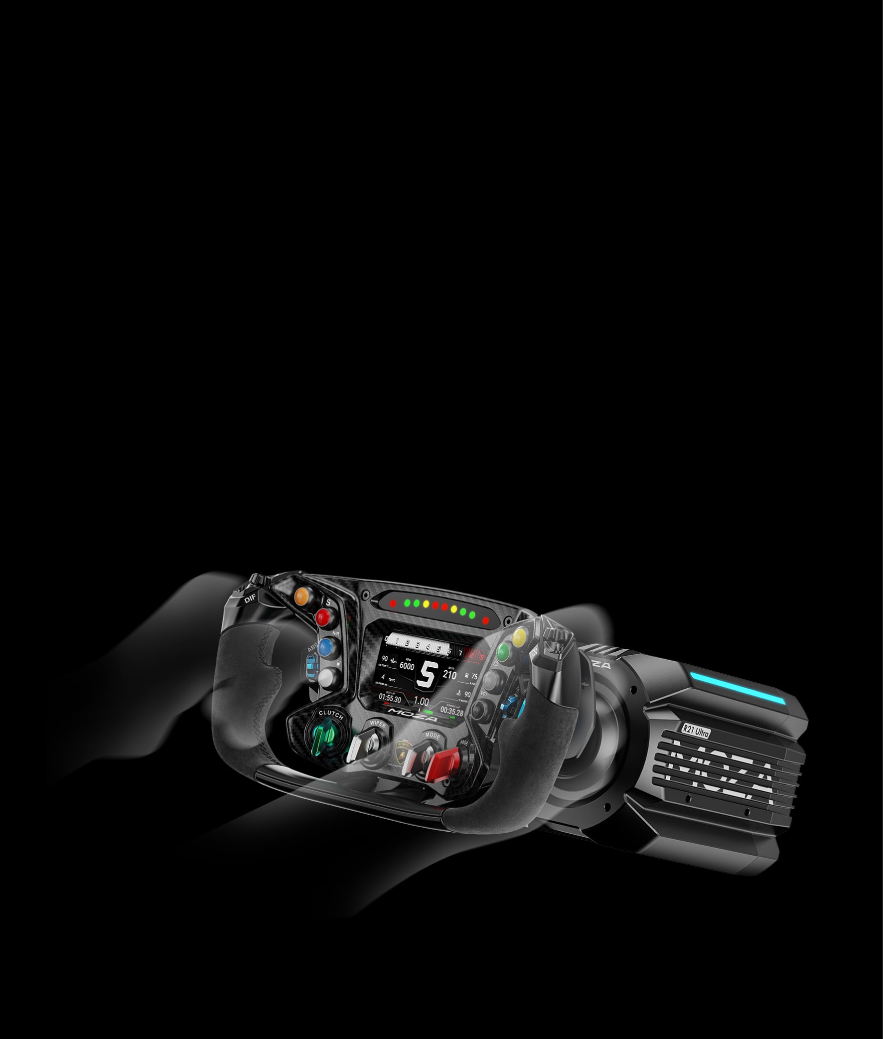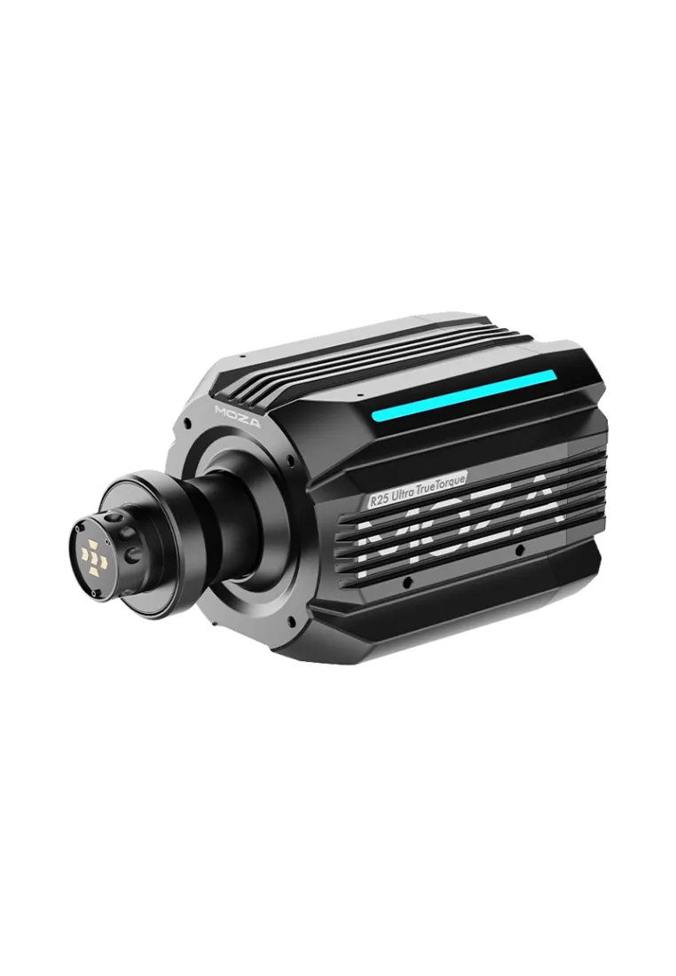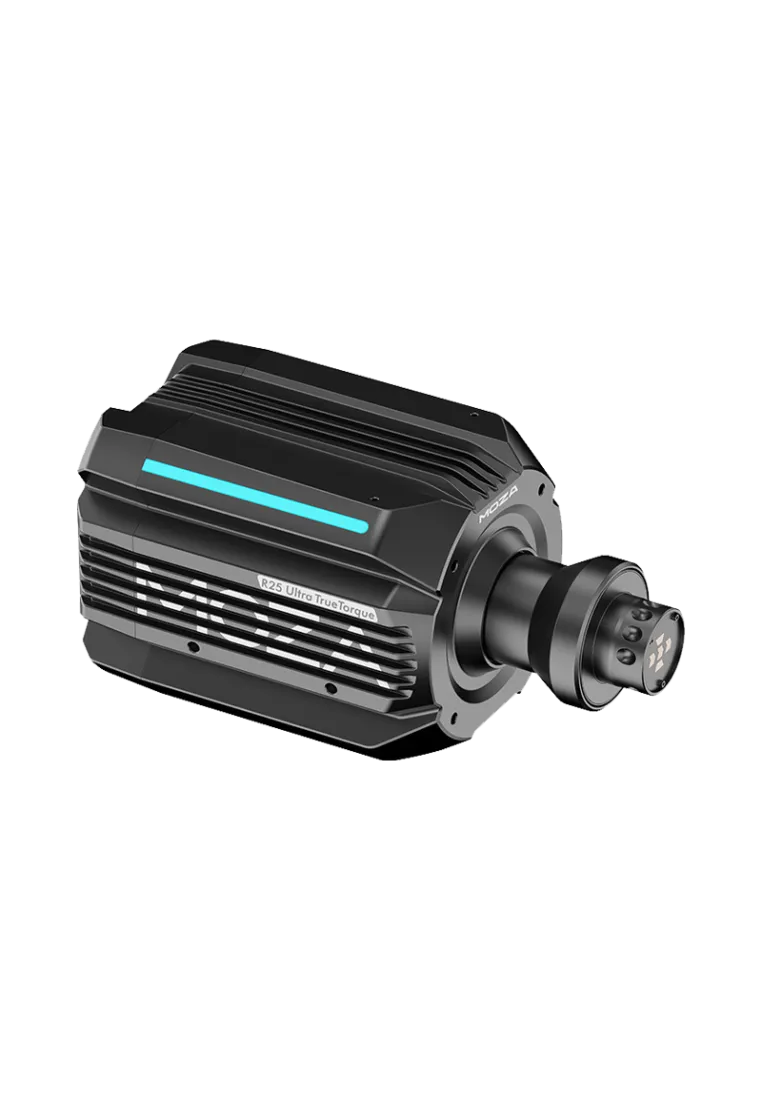 MOZA R25 Ultra – 25Nm direct drive base with 21-bit encoder and smart cooling. Top precision and full integration with the MOZA ecosystem.