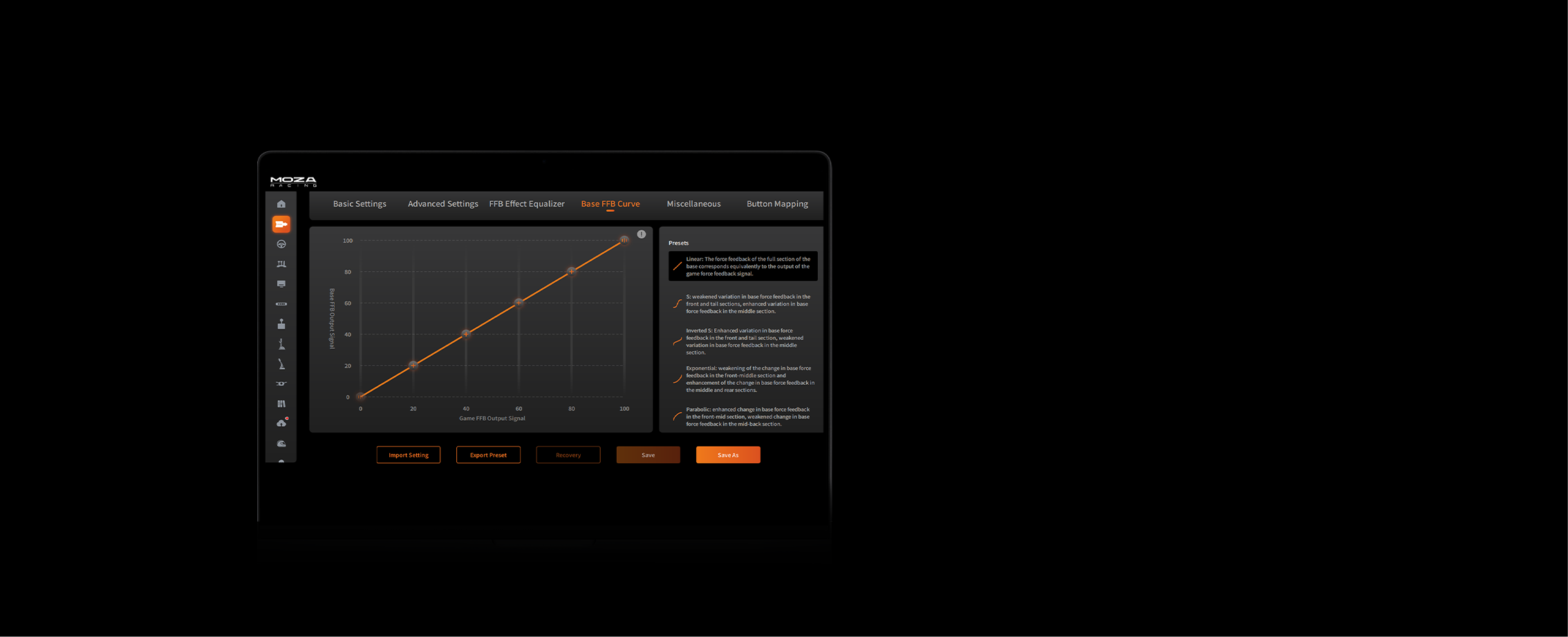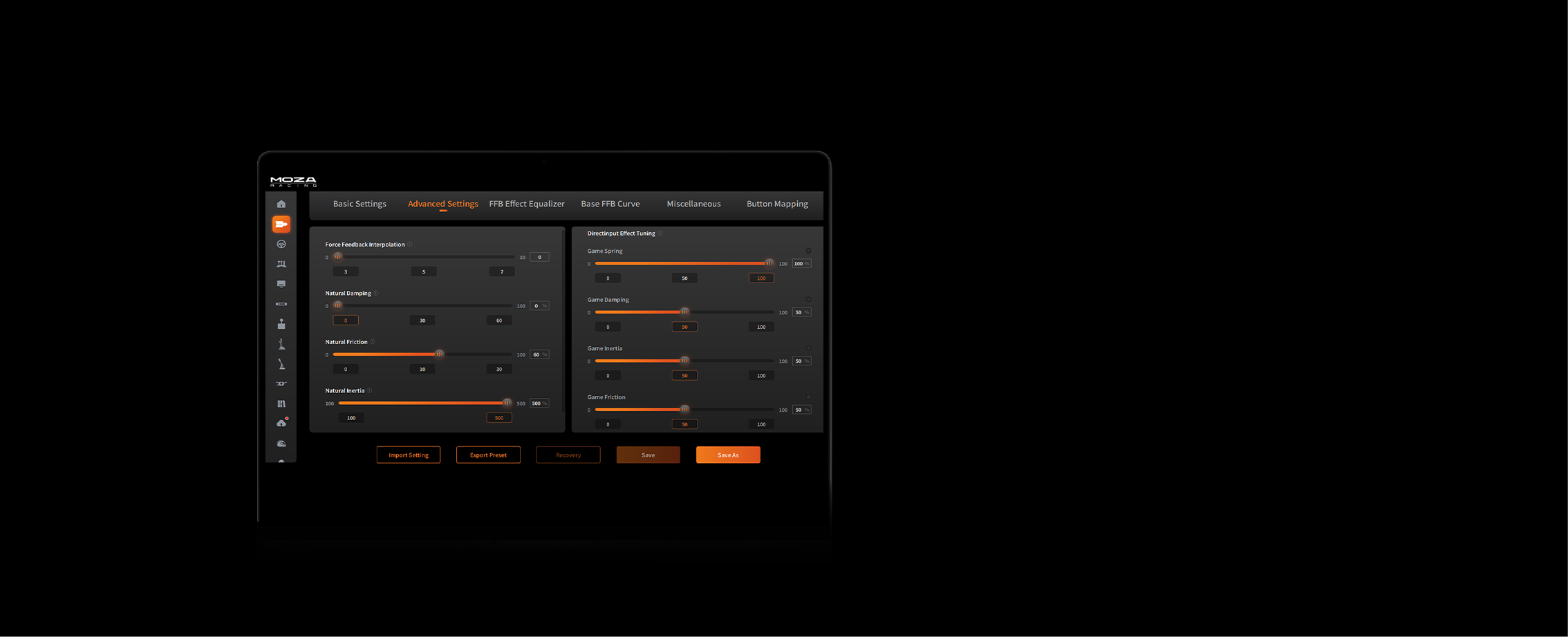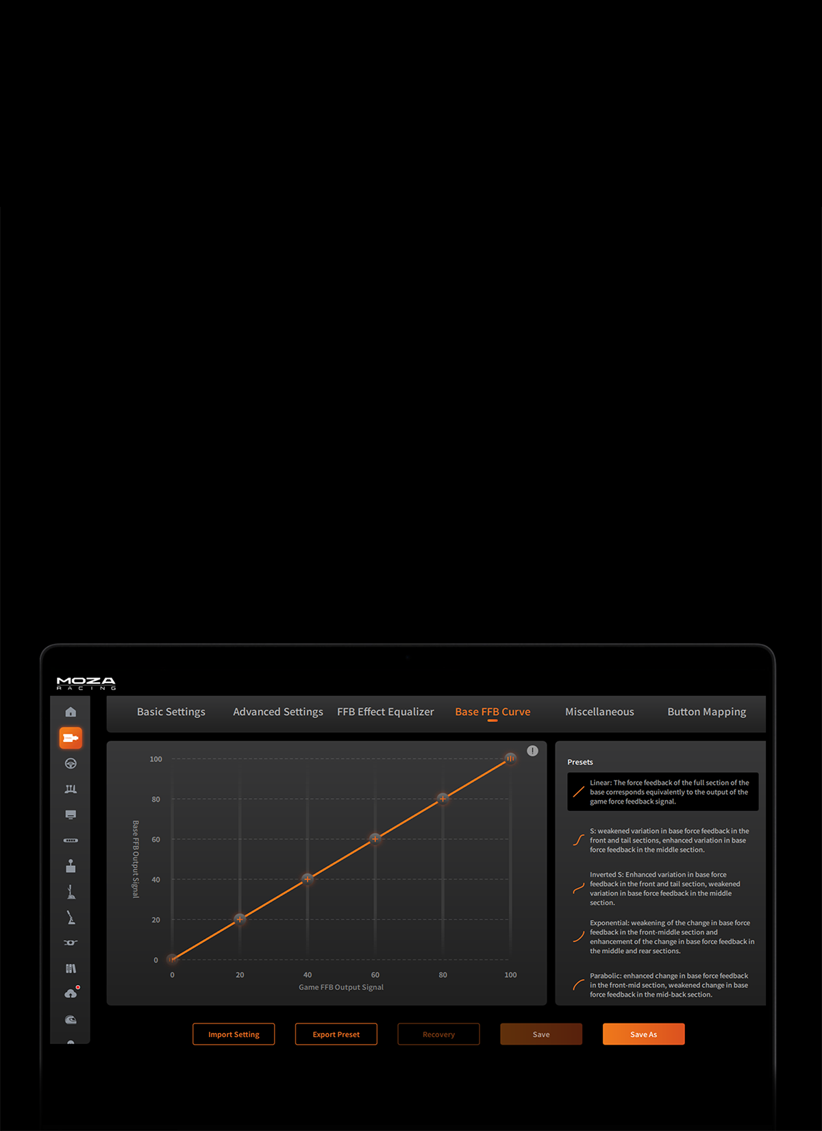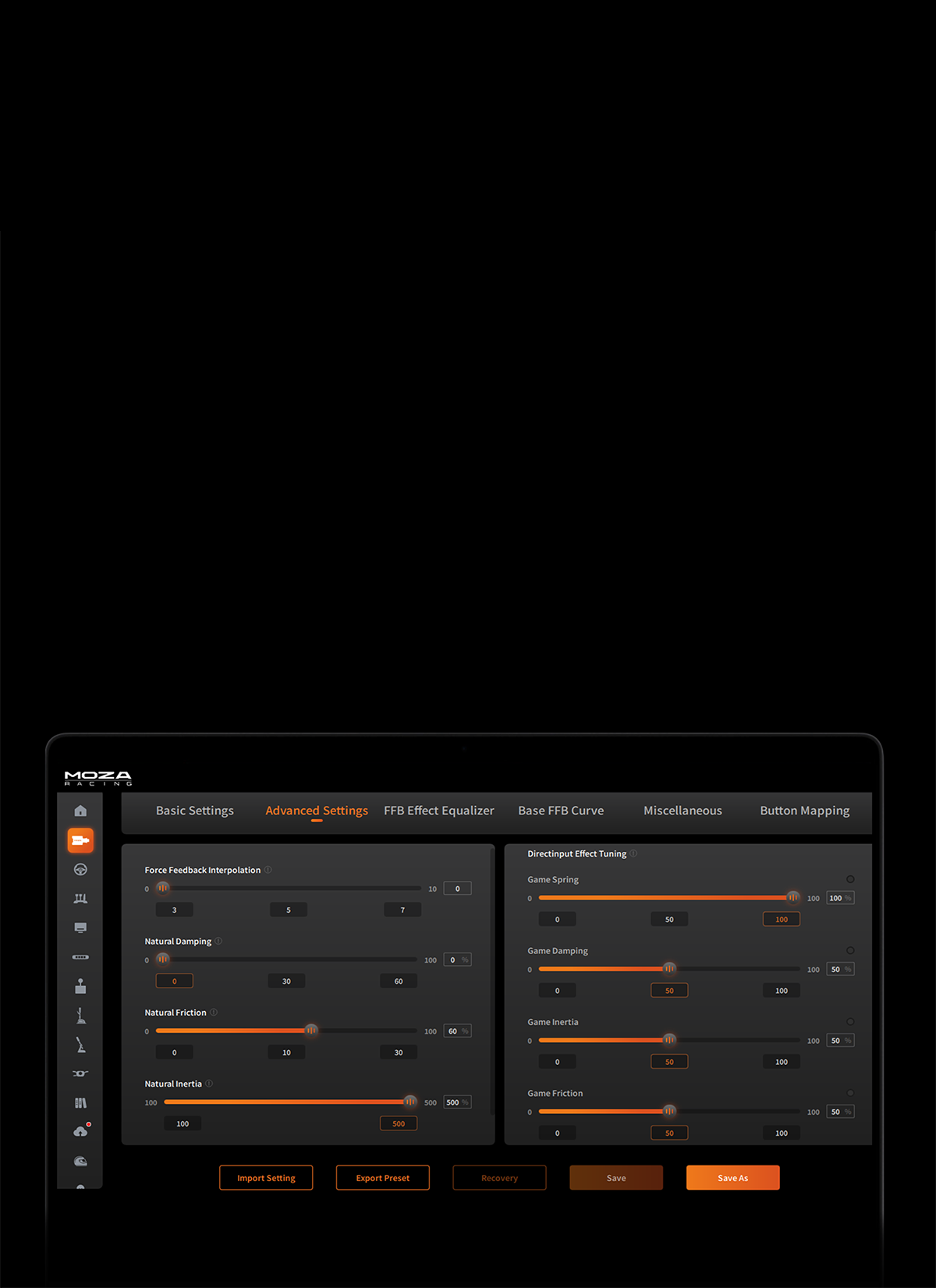 App Control | ✓ Supported via MOZA Pit House |