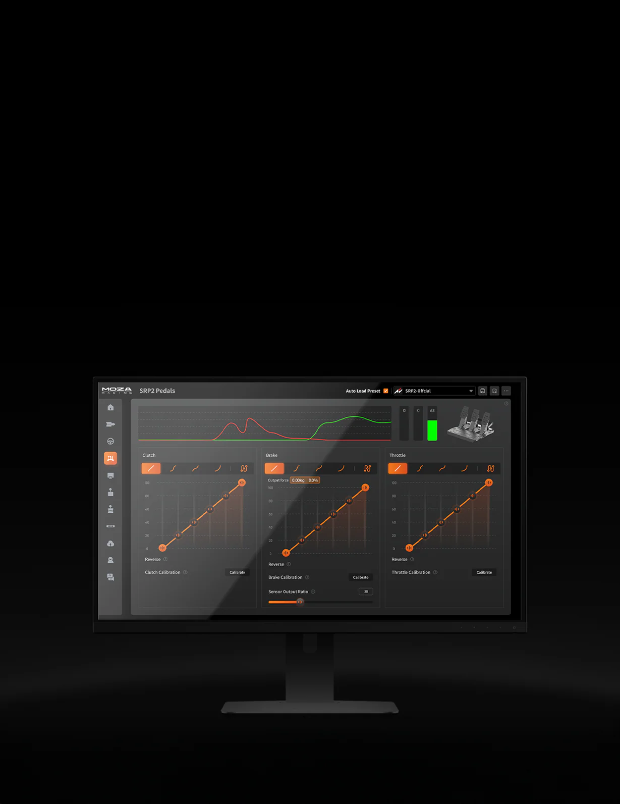 High-end hardware is only as good as its tuning. With the MOZA Pit House software, you gain total authority over your pedal setup. It allows you to monitor performance in real-time, fine-tune deadzones, and craft custom output curves to match your driving style. Whether you need an aggressive brake bite for qualifying or a smooth, progressive throttle for tricky wet conditions, Pit House unlocks the full potential of your rig, making the hardware work exactly how you want it to.