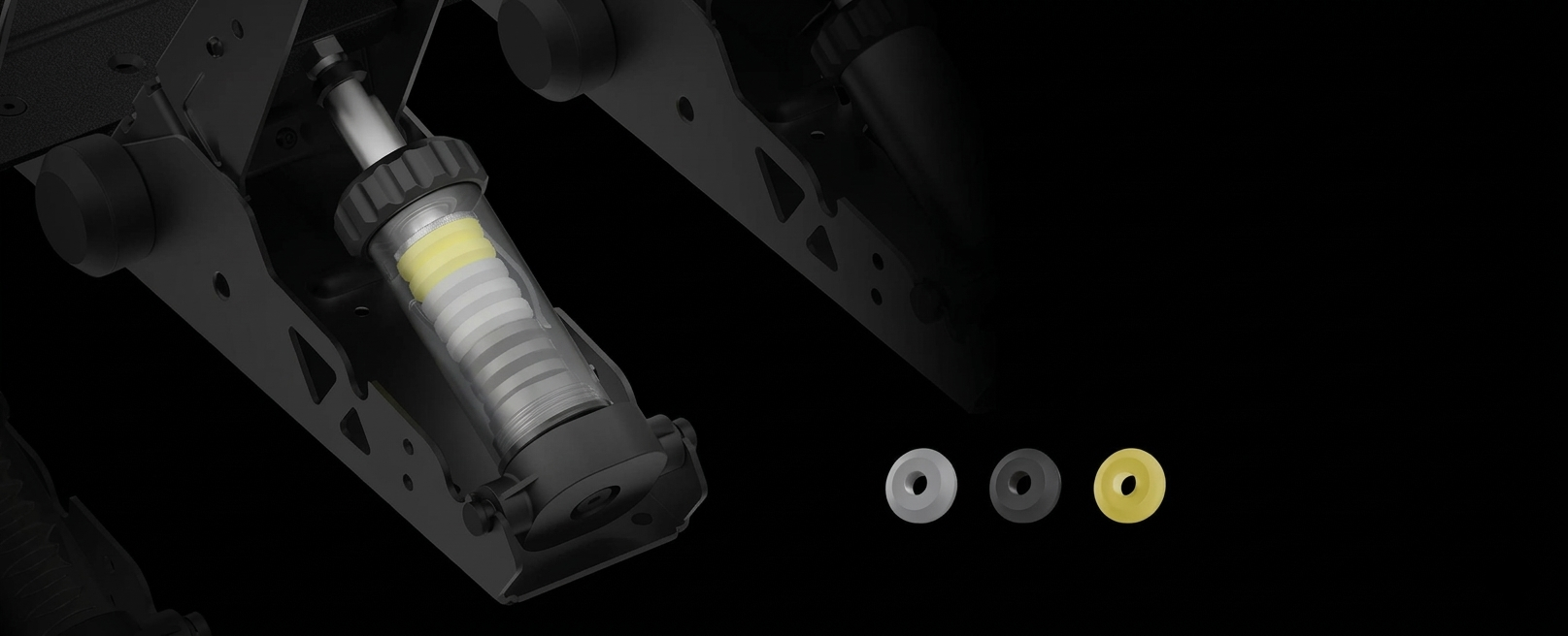 The out-of-the-box setup features a reliable elastomer structure paired with three spring hardness options (60R, 70R, and 80P), offering 25 distinct feel configurations right from the start. For those who want to fine-tune their rig to the extreme, the optional Performance Kit adds even more springs and elastomers to the mix, unlocking over 1,000 potential settings. Whether you prefer a progressive road car feel or a rock-solid Formula-style pedal, you can dial it in exactly how you like it.
