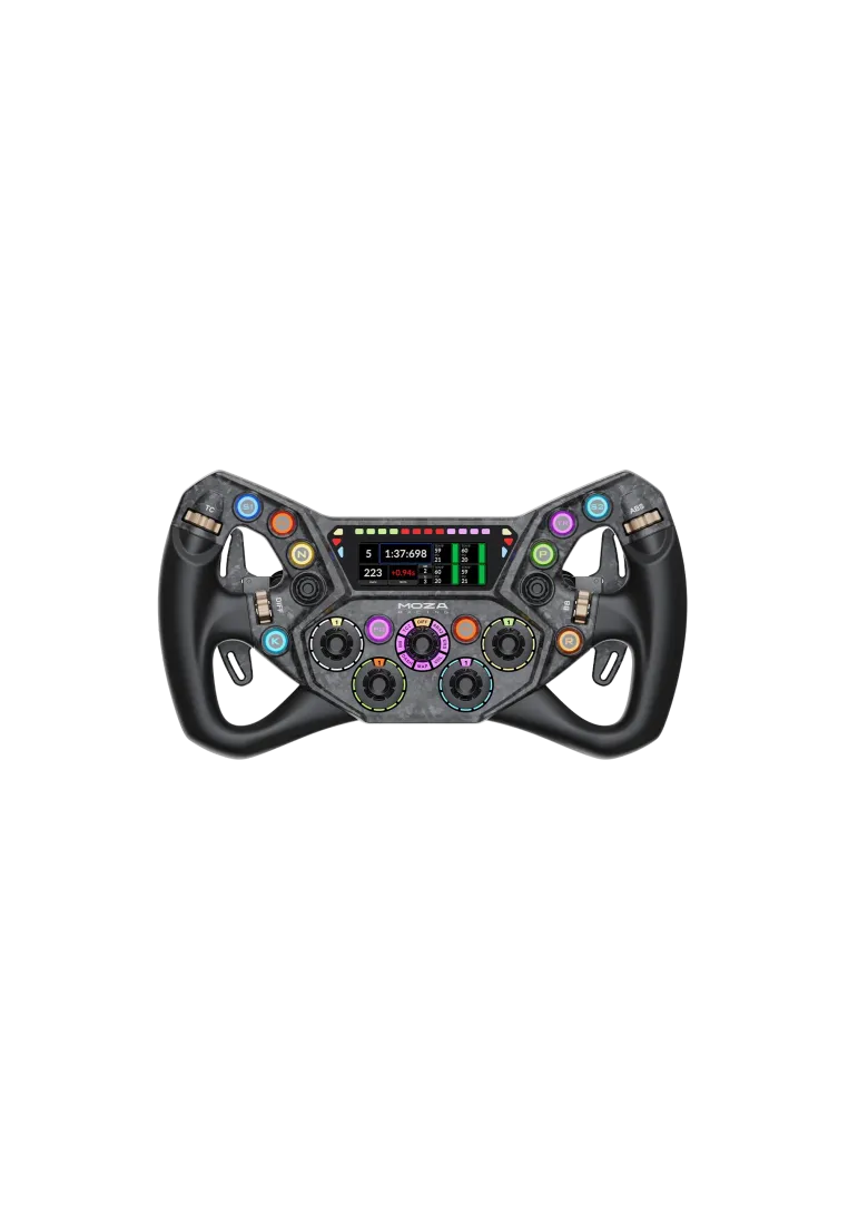 The MOZA KS Pro Wheel is a professional 300mm GT-style butterfly steering wheel, a masterpiece of racing engineering available at simline.eu. Constructed from advanced carbon fiber composites, it features 10 customizable RGB buttons, magnetic carbon shifters, and an analog dual-clutch system. Engineered for high-end Direct Drive bases, it combines extreme structural rigidity with ultra-low rotational mass for pure Force Feedback.