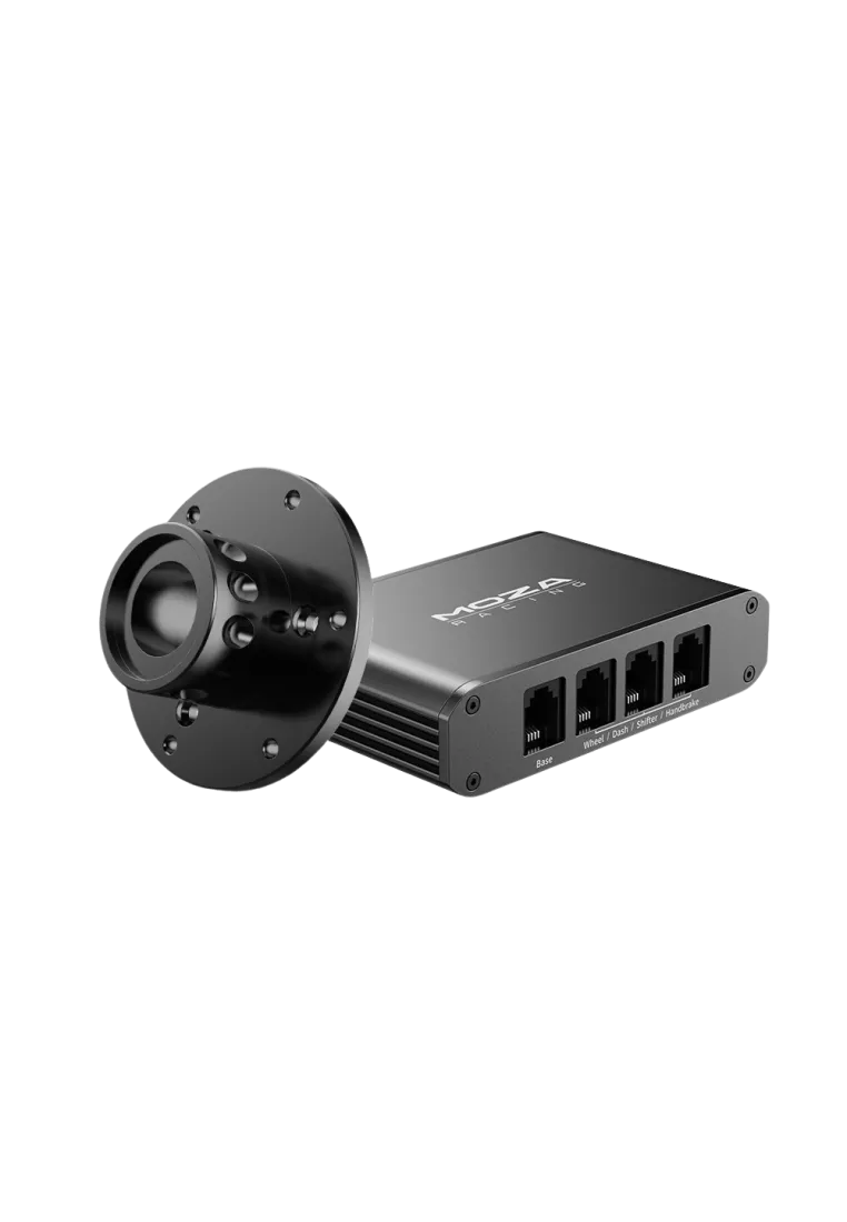 The MOZA Universal Hub can connect the MOZA FSR Formula Wheel, MOZA SR-P Lite pedals, and other upcoming products, directly to the PC.