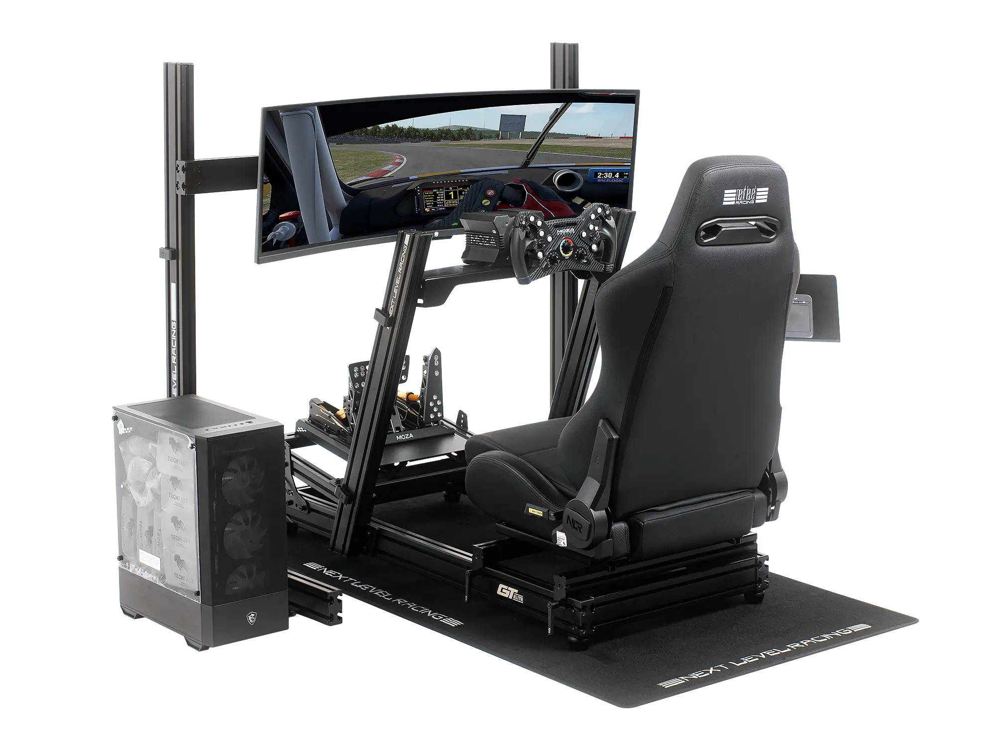 Please note: Products shown in the images are sold separately. Photos are for illustrative purposes only, showing a sample setup to demonstrate how the mat fits into a complete racing rig.
