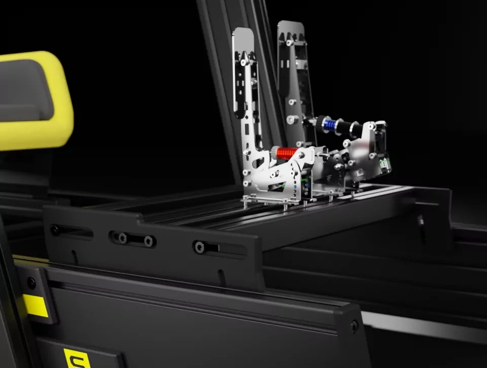 What sets this model apart is an even wider range of adjustment. You can smoothly change the pedal tilt, allowing you to switch from a typical rally-style (flat) position to the extreme upright angles found in Formula cars. The mounting system is fully compatible with most high-end pedals on the market (Heusinkveld, Simucube, Fanatec, Thrustmaster). If you're looking for a solution that "locks down" your pedals while allowing for millimeter-perfect tuning to your driving style, this Sabelt mount is unrivaled.