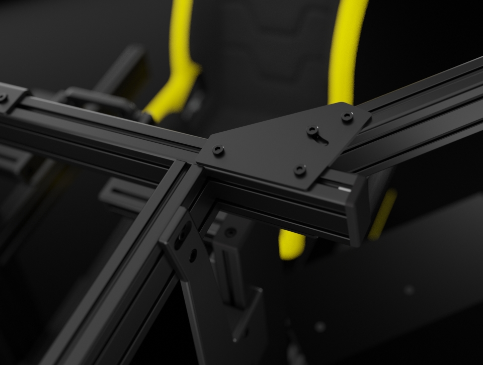 Sabelt Mounting Plates (10 mm) – massive, CNC-machined aluminum plates, powder-coated, connecting the arms to the rig frame.