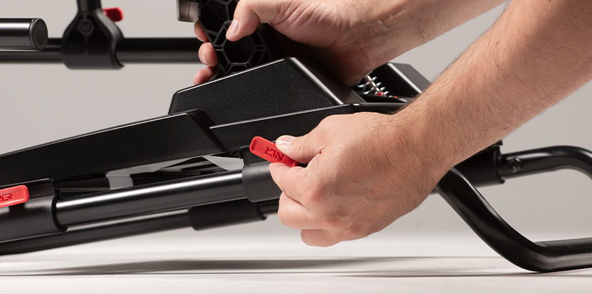 The innovative frame design prevents the cockpit from lifting under heavy braking. It features tool-free height and lateral adjustments, making it compatible with a wide range of pedal sets.