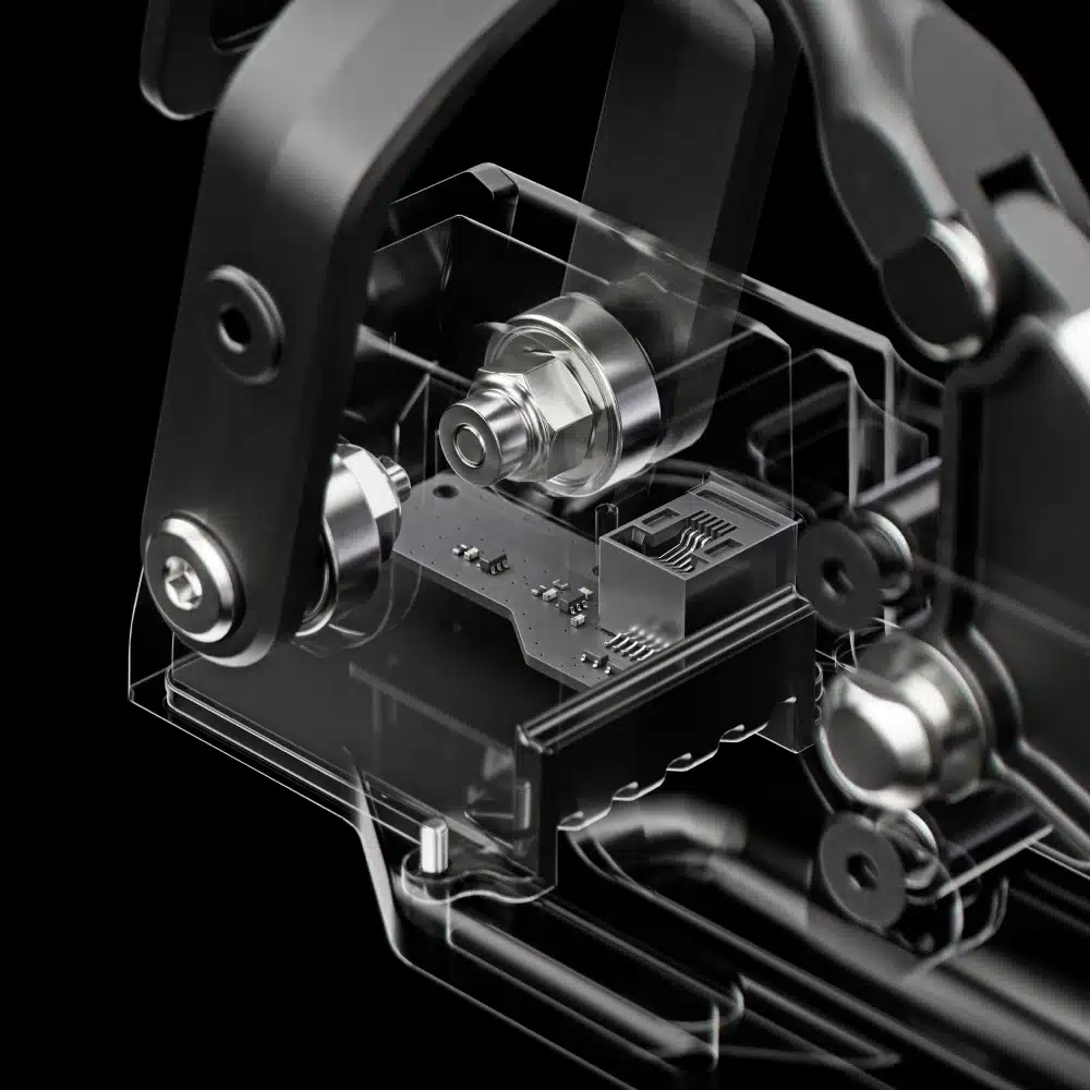 Unlike traditional Load Cell-based systems that measure pressure, this design focuses on precisely tracking the pedal's angle. This approach provides a more accurate and consistent experience, ensuring that your inputs are translated perfectly every time. By utilizing this technology, we’ve eliminated dead zones and ensured seamless sensor feedback across the entire range of travel.
