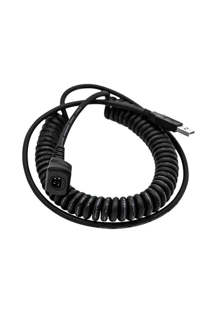 Cube Controls Q-CONN – coiled magnetic USB cable ensuring quick and safe connection between wheel and base, designed for Cube Controls models with Q-CONN port.