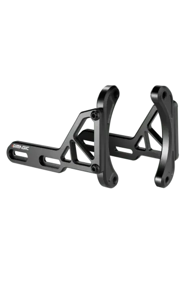 Bazy z serii Simagic Alpha EVO nie posiadają otworów w froncie urządzenia, mają montaż od spodu, lub od boku. Ten adapter wykorzystuje boczne mocowania i przenosi możliwość montażu na przód.