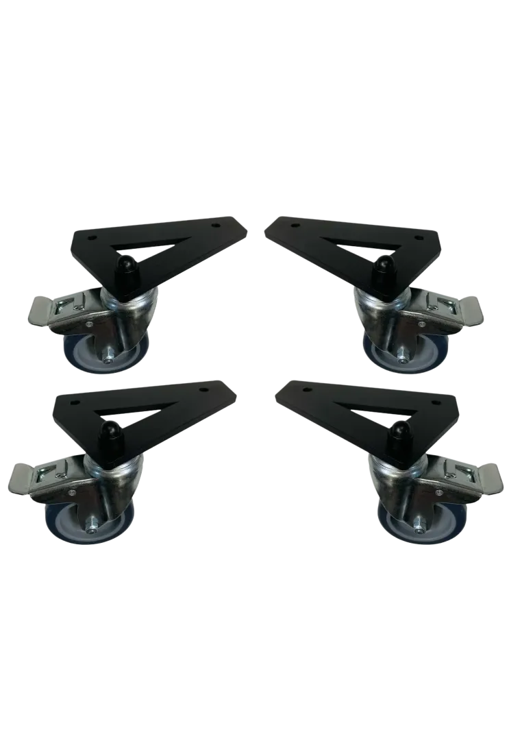• Wsporniki Feet Brackets – Specjalne stalowe uchwyty pozwalają na montaż kółek poza obrysem głównych profili ramy. Zwiększa to rozstaw punktów podparcia, co przekłada się na większą stabilność konstrukcji podczas jazdy.