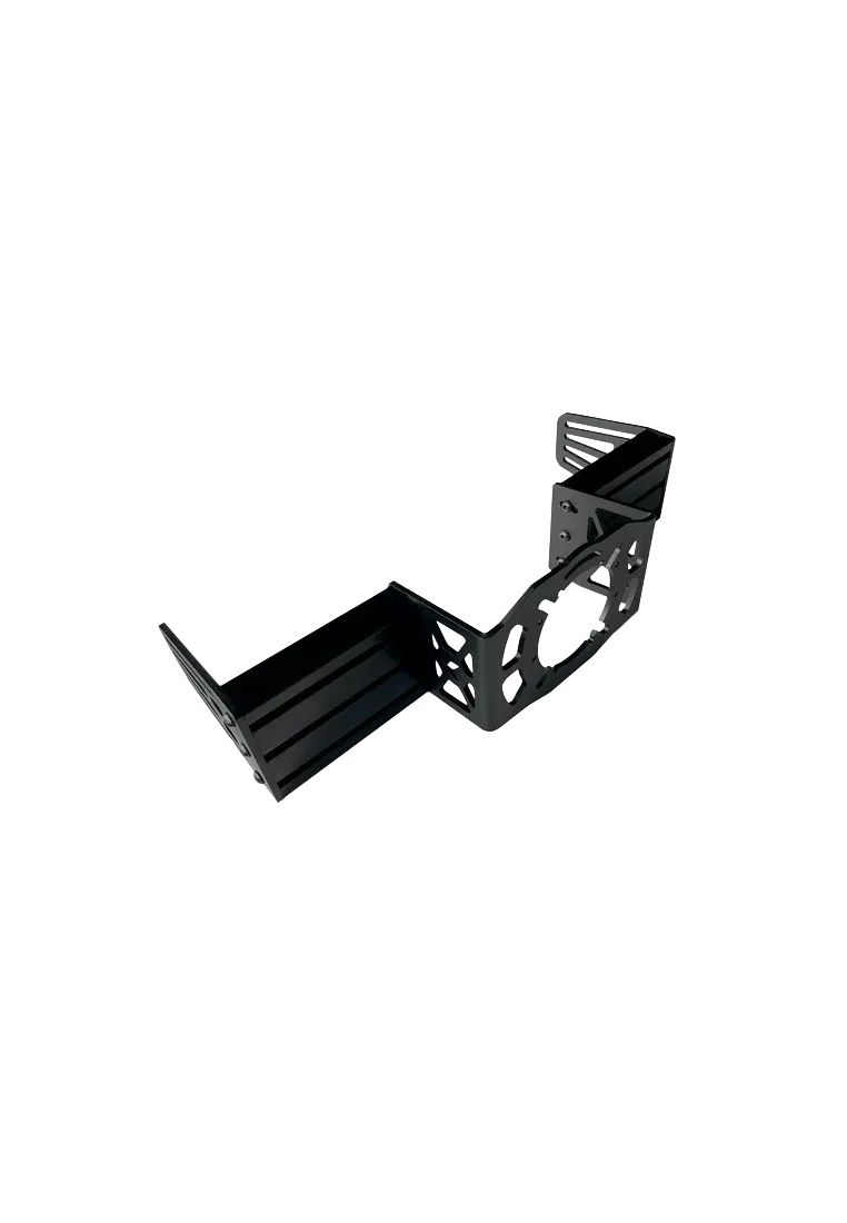 Gruba Stalowa Płyta – Wycinana laserowo z hartowanej stali i malowana proszkowo na czarno. Gwarantuje brak jakichkolwiek ugięć, pozwalając na precyzyjne przeniesienie niuansów FFB na kierownicę.