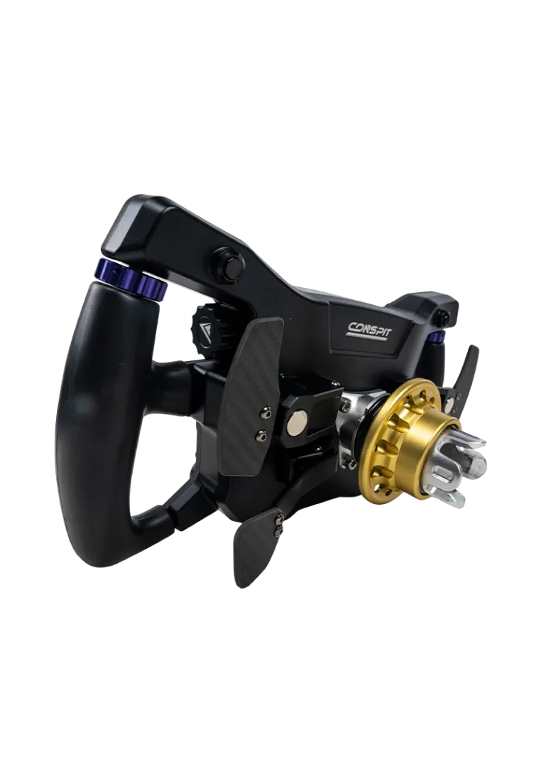 Conspit MAX 01 to kierownica simracingowa w stylu F1: 300 mm grip, ekran dotykowy 4″, 21 konfigurowalnych RGB LED, magnetic paddles, dual‑clutch, SimHub i pełna kontrola przez Link 2.0. Idealna dla wymagających.