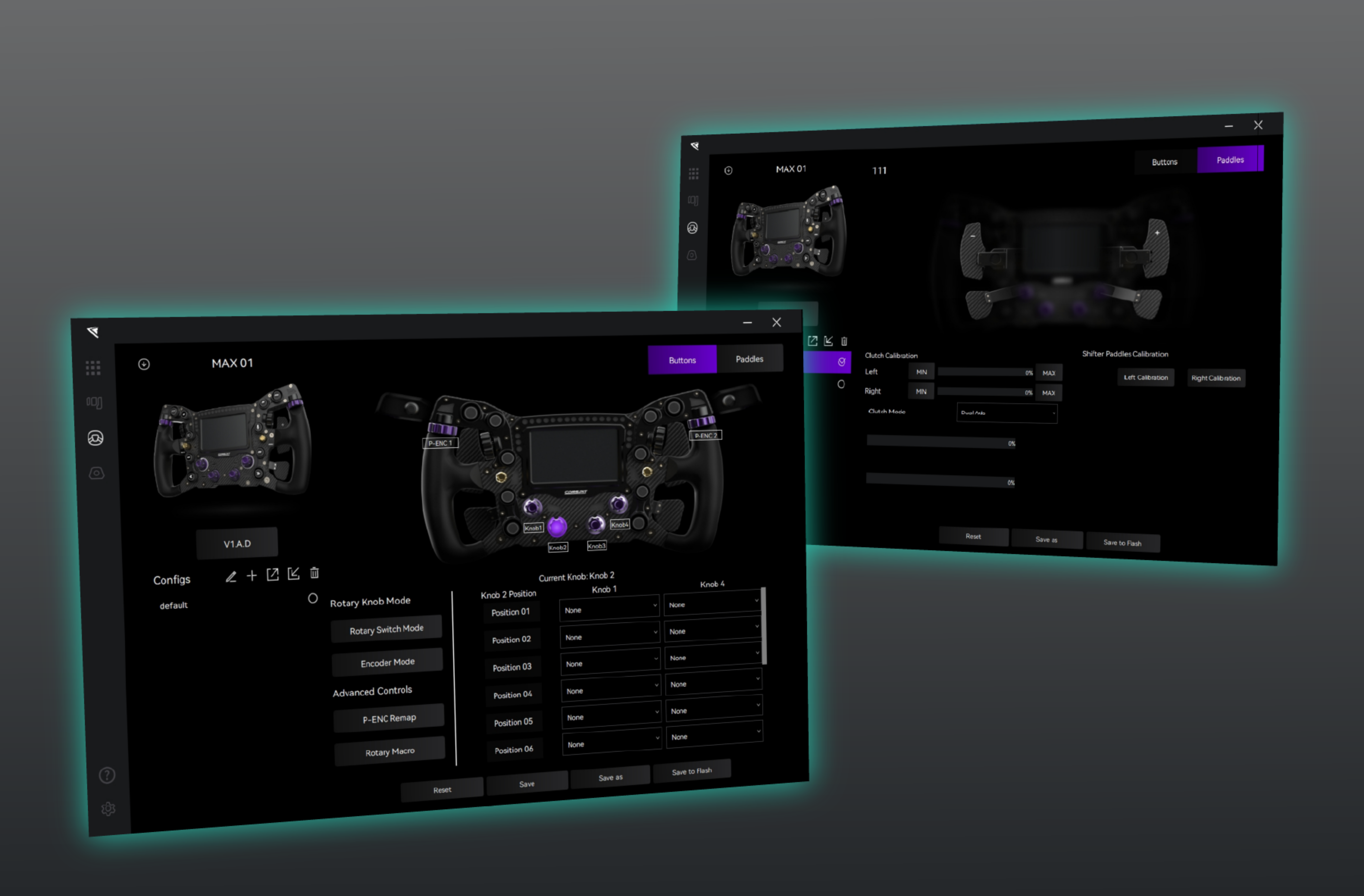 Stworzony z myślą o rywalizacji na najwyższym poziomie, MAX 01 jest w pełni kompatybilny z SimHub, dzięki czterocalowemu ekranowi dotykowemu, 21 programowalnym diodom RGB i zaawansowanym funkcjom sterowania CONSPIT. Pozwala kierowcom na pełne wykorzystanie potencjału wyścigowego.