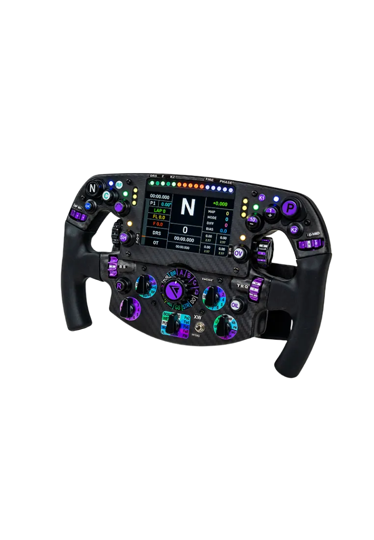 PW1 odwzorowuje konstrukcję kierownicy bolida Formuły 1 – wykonany z włókna węglowego, wyposażony w czytelny wyświetlacz i pełen zestaw elementów sterujących. Średnica uchwytu 280 mm daje precyzję i poczucie autentycznej jazdy F1 w Twoich rękach.