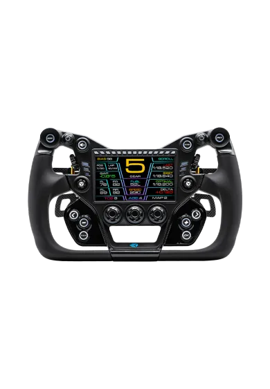 GT-X2 to świeże podejście do kierownic GT. Masz do wyboru obręcz o średnicy 30 albo 32 cm, więc możesz dopasować ją pod siebie. Przód zrobiono z polimeru wzmocnionego włóknem węglowym, dostępnego w czterech kolorach: czarnym, białym, zielonym i czerwonym, a tył z aluminium odlewanego ciśnieniowo. Do tego dostajesz 5-calowy ekran dotykowy, podświetlane przyciski, przełączniki z przodu i z tyłu, trzy enkodery, dwa enkodery kciukowe i dwa joysticki funky. Wszystko po to, żeby mieć pod ręką dokładnie to, czego potrzebujesz na torze.