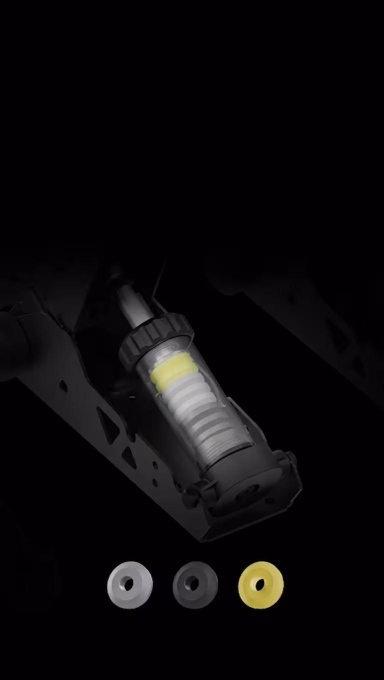 Standardowy zestaw opiera się na sprawdzonym systemie elastomerów z trzema twardościami sprężyn do wyboru (60R, 70R oraz 80P). Już na starcie daje Ci to aż 25 różnych kombinacji ustawień, dzięki którym znajdziesz swój idealny punkt oporu. Jeśli jednak szukasz absolutnej perfekcji, opcjonalny Performance Kit rozszerza ten ekosystem o dodatkowe elementy, pozwalając na stworzenie ponad 1000 unikalnych konfiguracji. Od miękkiego hamulca z auta drogowego, po betonowy pedał z bolidu Formuły – wybór należy do Ciebie.