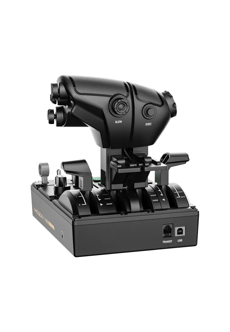 MOZA Flight TQB to boeingowy moduł przepustnicy do MTQ z dłuższym zakresem ruchu, realistycznym reverse thrust, fizycznym TO/GA i osobnymi dźwigniami SPD BRK oraz FLAP. Solidny, ciężki w odbiorze i bardzo precyzyjny. |