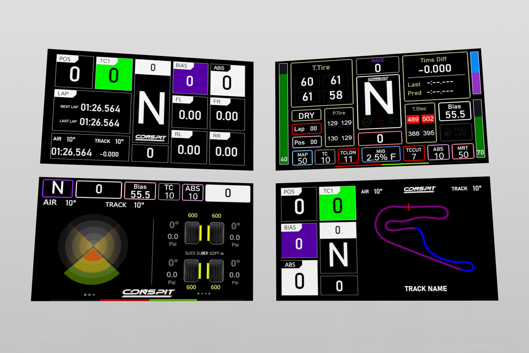 Obok standardowych stron SimHub, CONSPIT oferuje dedykowane, zoptymalizowane interfejsy do pobrania – idealne w wyścigowych warunkach.