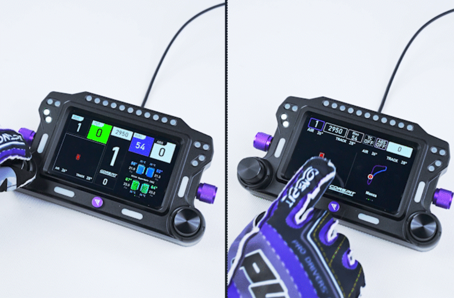Conspit CSD Dashboard to profesjonalny wyświetlacz do symulatorów z 5‑calowym ekranem IPS i zestawem 31 diod RGB, w pełni gotowy do pracy z SimHub. Wytrzymała aluminiowa obudowa i modularny montaż na kokpicie lub bazie kierownicy gwarantują komfort i estetykę.